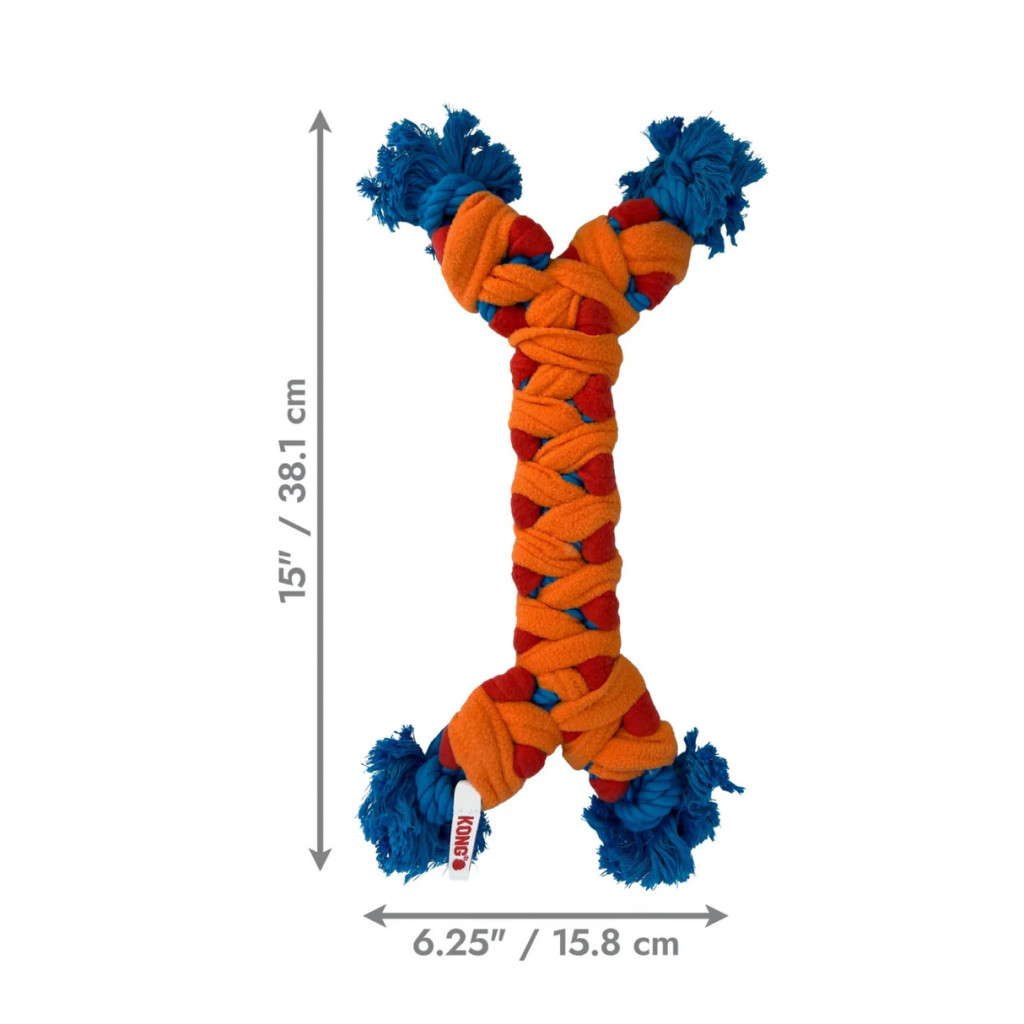 A KONG Rope Rally Bone egy sokoldalú, strapabíró kötéljáték, amely húzásra, dobálásra és közös játékra készült.